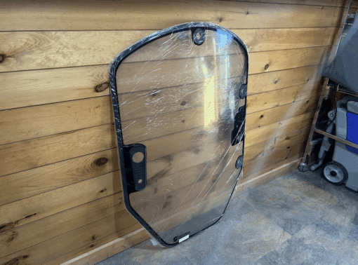 Give your cab the protection it deserves—without sacrificing visibility. Our 1/2″ clear polycarbonate front windshield is a direct OEM glass replacement for John Deere Large Frame G Series skid steers. Precision-molded for a factory fit, this door is engineered for maximum strength, operator safety, and long-term clarity.